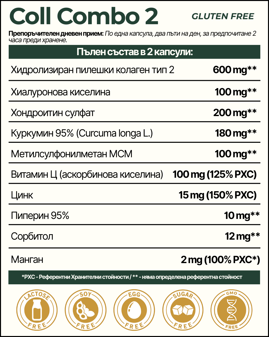 CollCombo 2 (КолКомбо 2) е мощна комбинация от натурални вещества и минерали, специално създадена за подпомагане на правилната функция на ставите и чревното здраве. Подходяща за възстановяване на стави след травми и при възпалителни състояния.